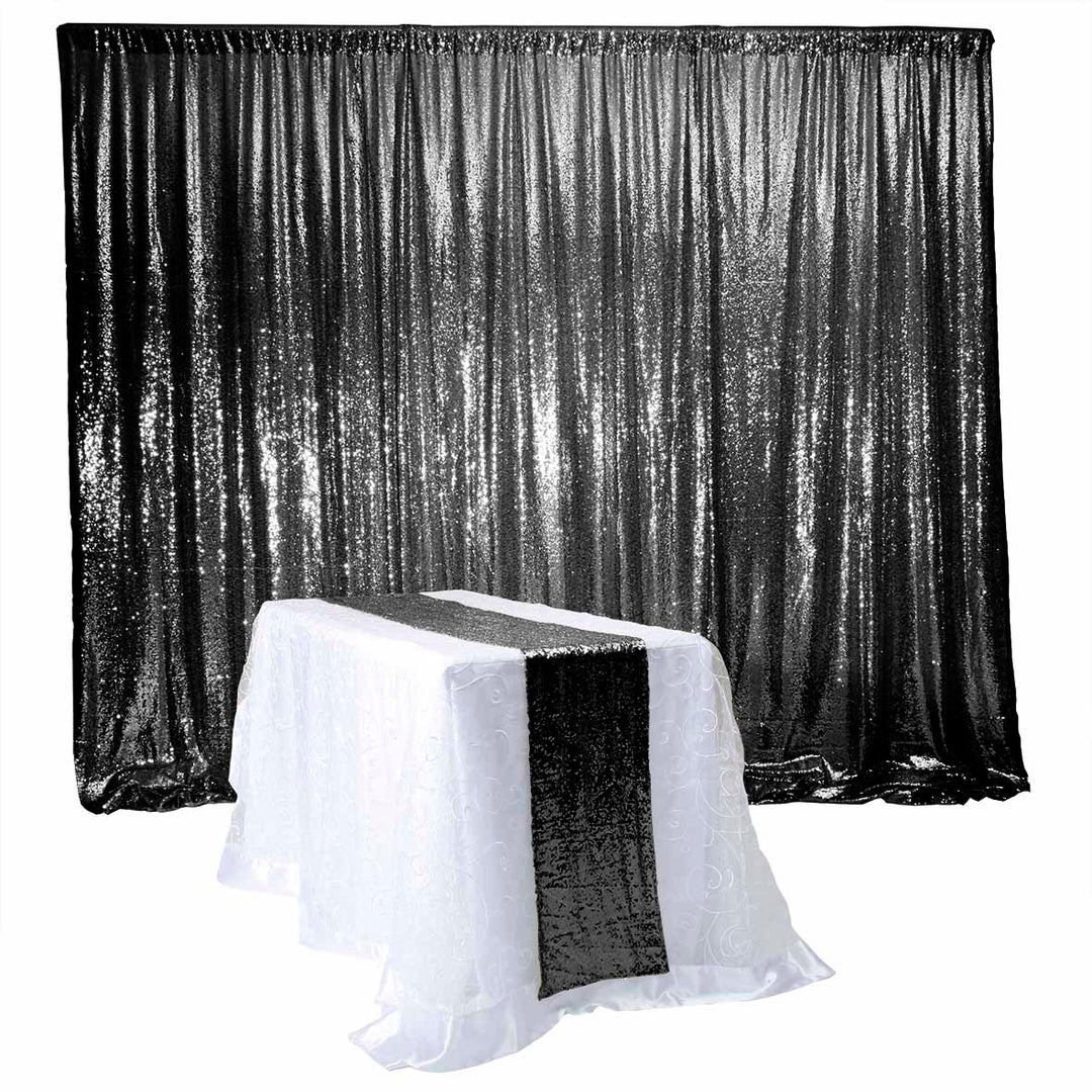 This Black Sequin Table Runner is designed to add glamour and sparkle to any event.
