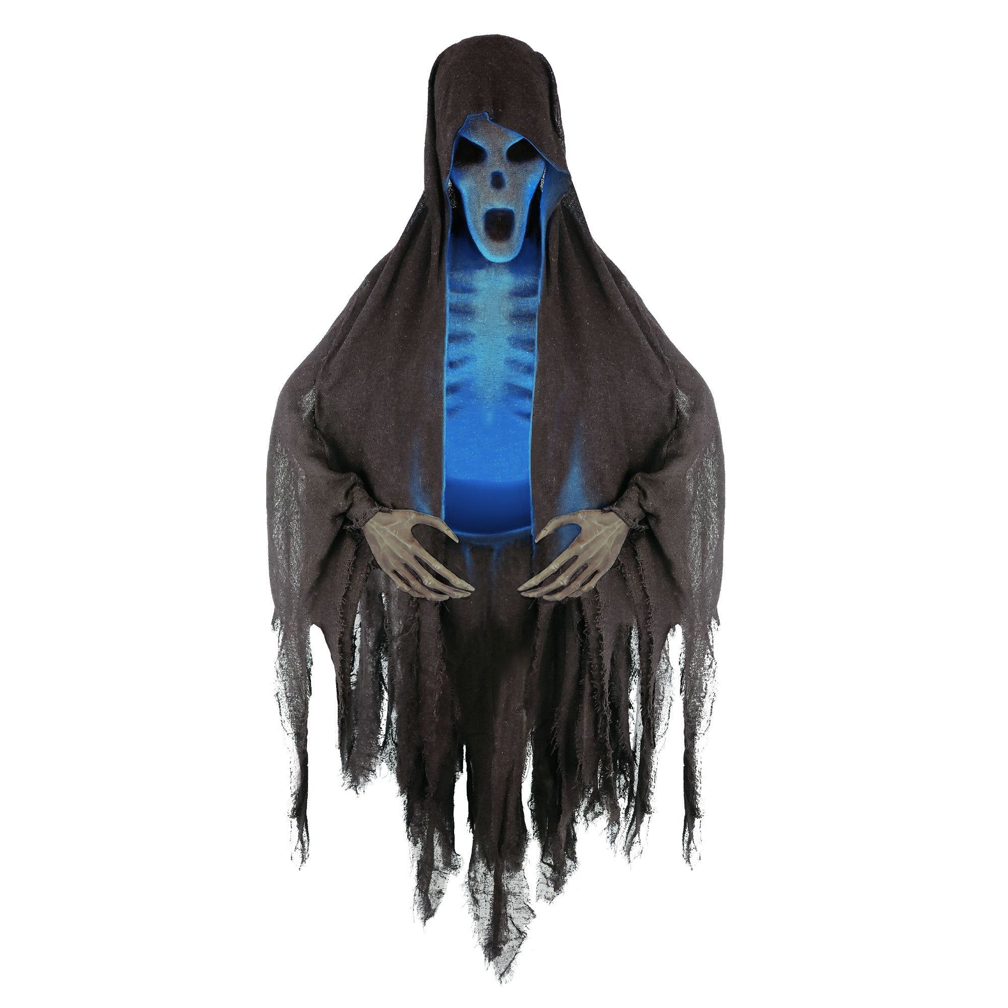 Once activated by sound and motion, this easy to hang prop will glow and emit scary sounds.
