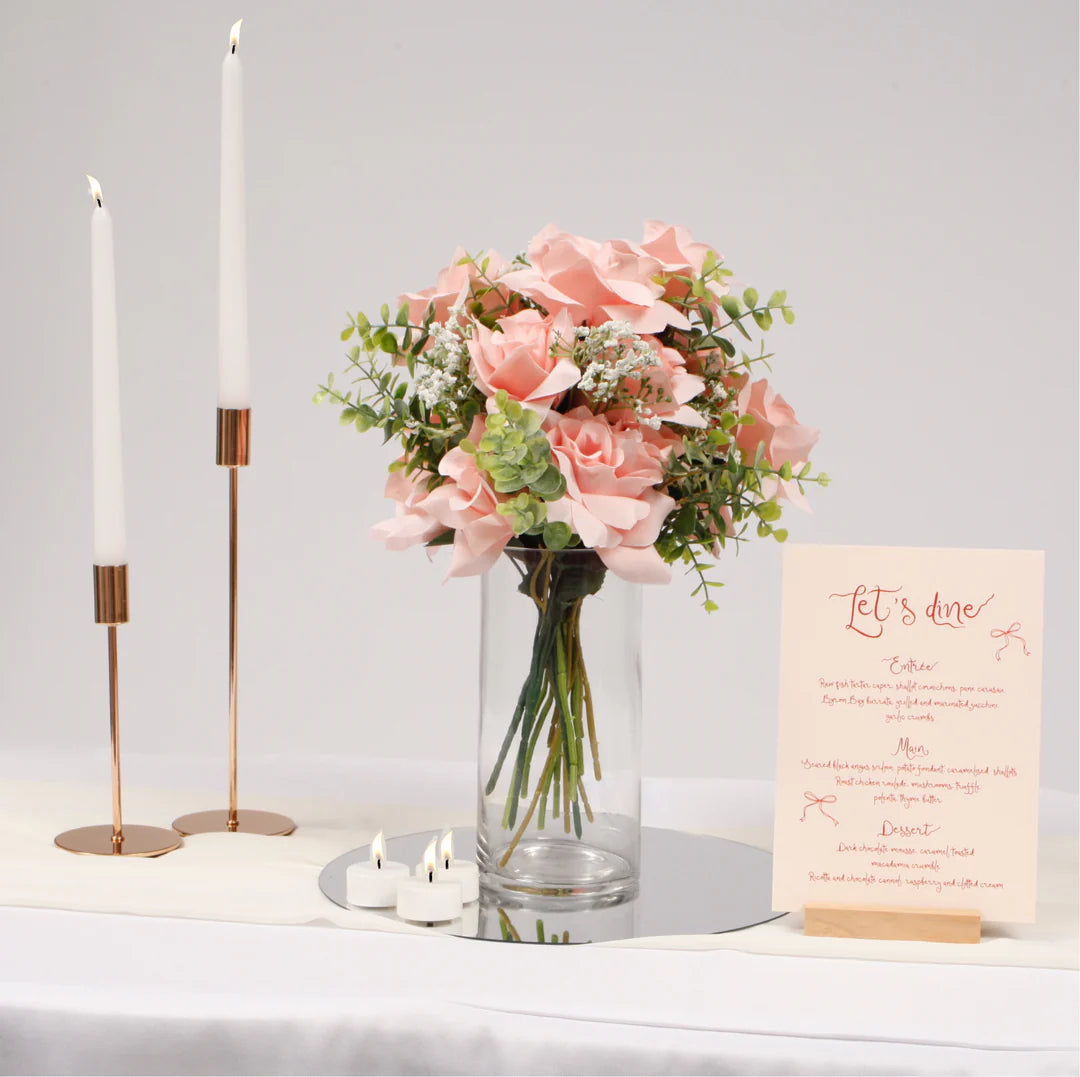 Add a bit of glamour to your table with these large mirror plate centrepieces.  Perfect for candles, flower arrangements, or any event decorations